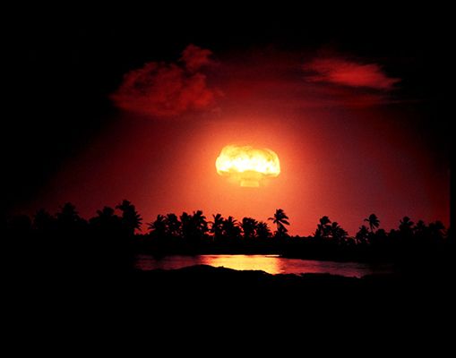 L’auteur nous montre d’abord les explosions dans le Nevada, puis dans le Pacifique depuis les îles ou les explosions sous-marines, puis à très haute altitude.