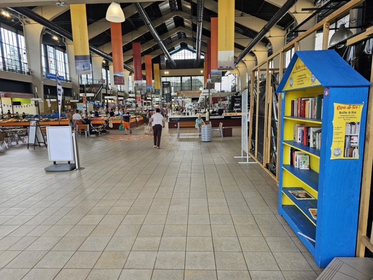 Je suis allée m’y promener avec mon amie Marie. On entre, on la voit, on fait le tour des halles, on boit un thé… en ressortant, je vais pour poser mon livre… une dame passe avant moi, rafle au bas mot le tiers du contenu de la boite, j’en suis restée comme deux ronds de flan ! 😄😲🤪